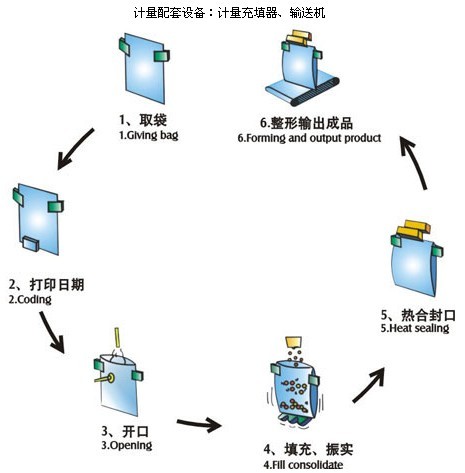 技術(shù)參數(shù): 包裝材料:自立袋、手提袋、拉鏈袋、四邊封袋、三邊封袋、紙袋等復(fù)合袋 包裝袋尺寸:W:100-200mm L:100-300mm 充填范圍:5-1500g 包裝,:25-45包/分 (其,由產(chǎn)品自身及充填重量決定) 總功率:1.5kw 外形尺寸:1540×1240×1465mm